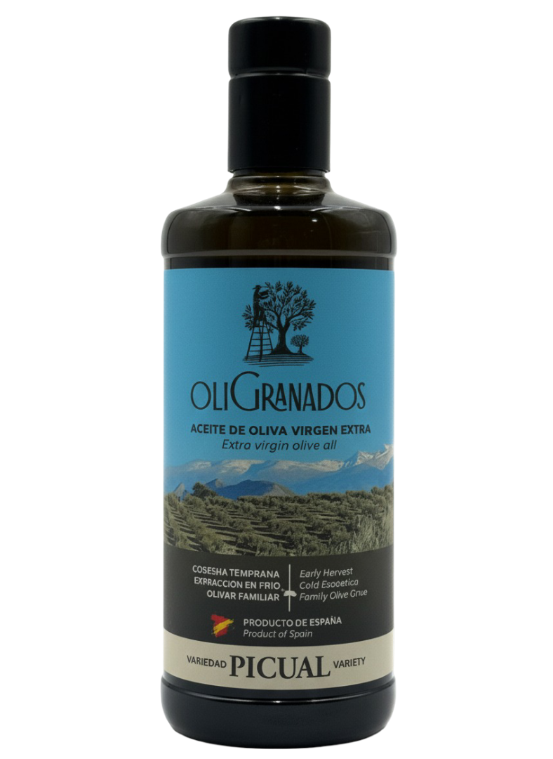 Verse olijfolie Vroege Oogst, Eerste Koude Extractie, Nieuwe Oogst 2024/2025 De Picual olijfolie is de meest verspreide en mogelijk de bekendste variëteit in Spanje. Het wordt beschouwd als een van de meest stabiele vanwege de hoge concentratie natuurlijke antioxidanten, die helpen voorkomen dat de olie oxideert. Deze olijfolie heeft prestigieuze prijzen gewonnen, waaronder: 1e Prijs voor Groen Fruitig "Sabor Granada 2023" Zilveren Award bij Virtus Lissabon 2019 Gouden Award bij Terraolivo Israël 2017