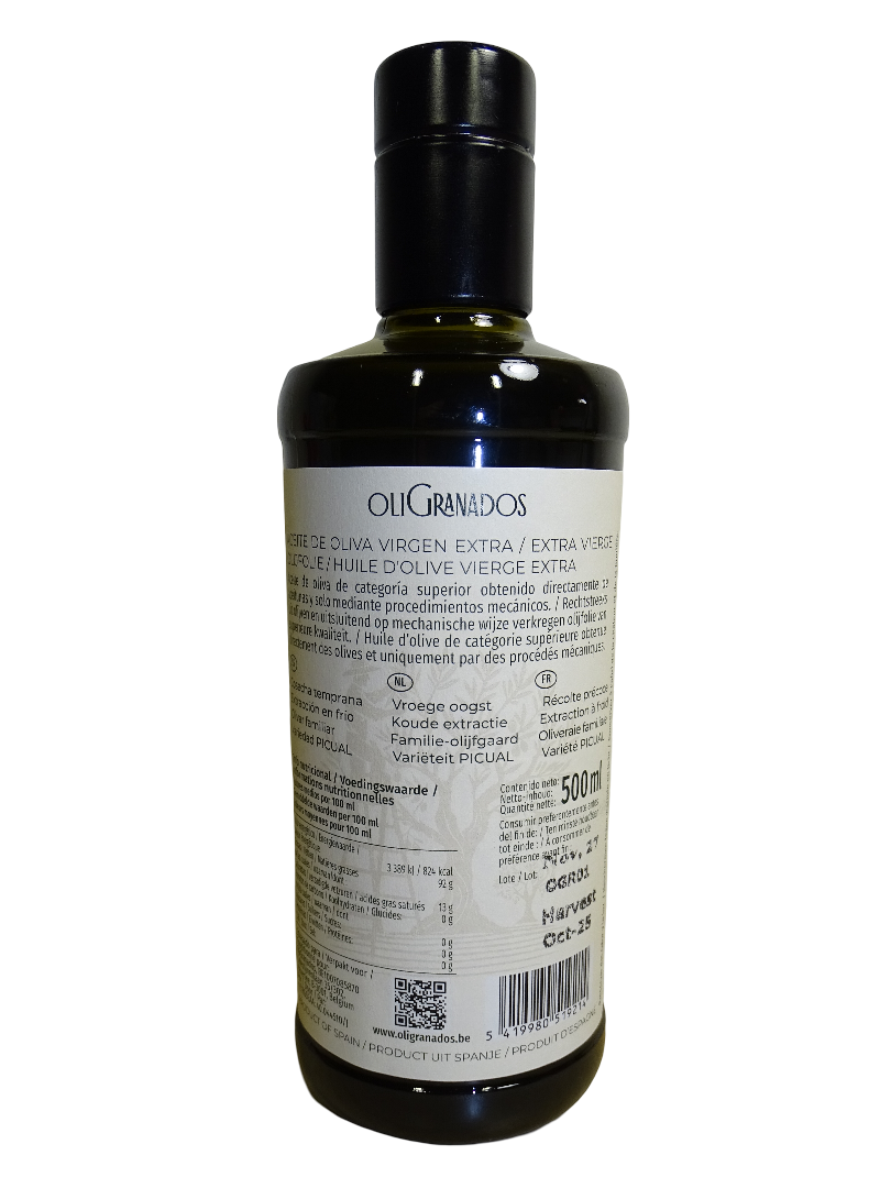 Deze olijfolie komt van onze eigen familiebogaard in Granada (Spanje), handgeplukt door ons in oktober 2025.